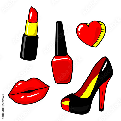 Red Kiss Lips Nail Polish Lipstick Heart Women S Shoe High Heel by stock.adobe.com