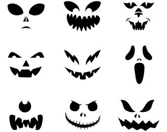 Halloween Faces Pumpkin Carving Stencils Free Svg Files Clipart by printablecuttablecreatables.com