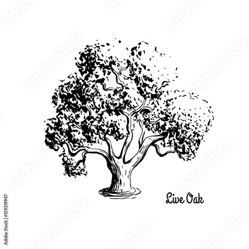 Vector Sketch Illustration Of Live Oak Black Silhouette Of by stock.adobe.com