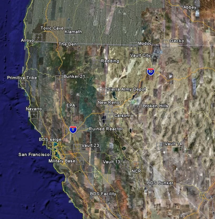 Locations From Fallout On A Map Of California And Nevada by narkiewicz.info