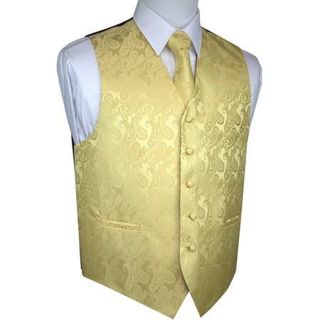 Vesuvio Napoli Men S Paisley Design Dress Vest Necktie Gold Color Neck Tie Set For Suit Tux by amazon.com