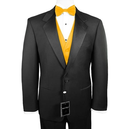 Neil Allyn 7 Piece Formal Tuxedo With Flat Front Pants Shirt Gold Vest Bow Tie Cuff Links Prom Wedding Cruise by walmart.com