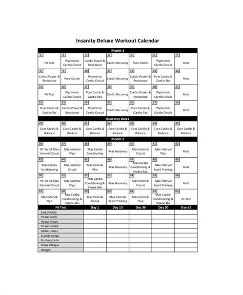 Sample Insanity Workout Sheet 6 Examples In Word Pdf Excel by sampletemplates.com
