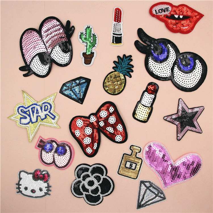 Wholesale Mixed Bow Tie Patch Iron On Patches Cloth Sequins Patches Diy Sew On Appliques Garment Accessory Lip Eyes Flower Hot Fix Motifs by dhgate.com