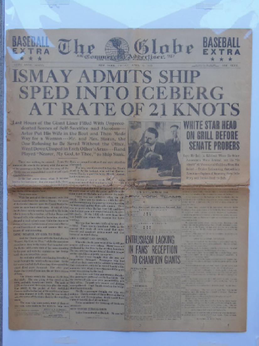 Newspaper The Globe Titanic Aftermath Headlines by liveauctioneers.com