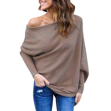 Women Off Shoulder Cut Out Solid Color Long Sleeve Blouse Shirt Tops Pullover Baggy Bat Wing Sweater by walmart.com