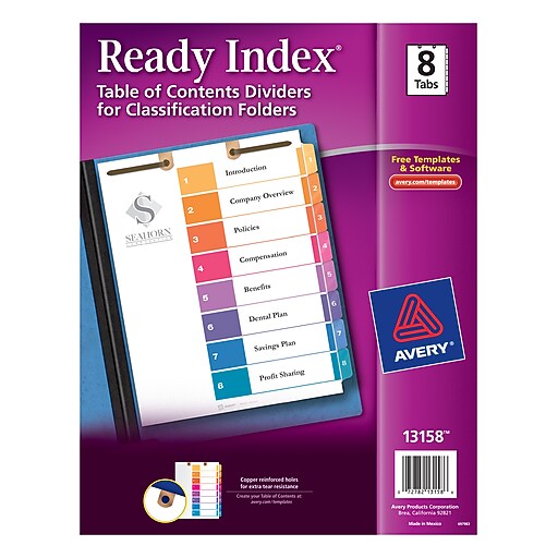 Avery Ready Index Table Of Contents Dividers For Classification Folders 8 Tab Set by staples.com