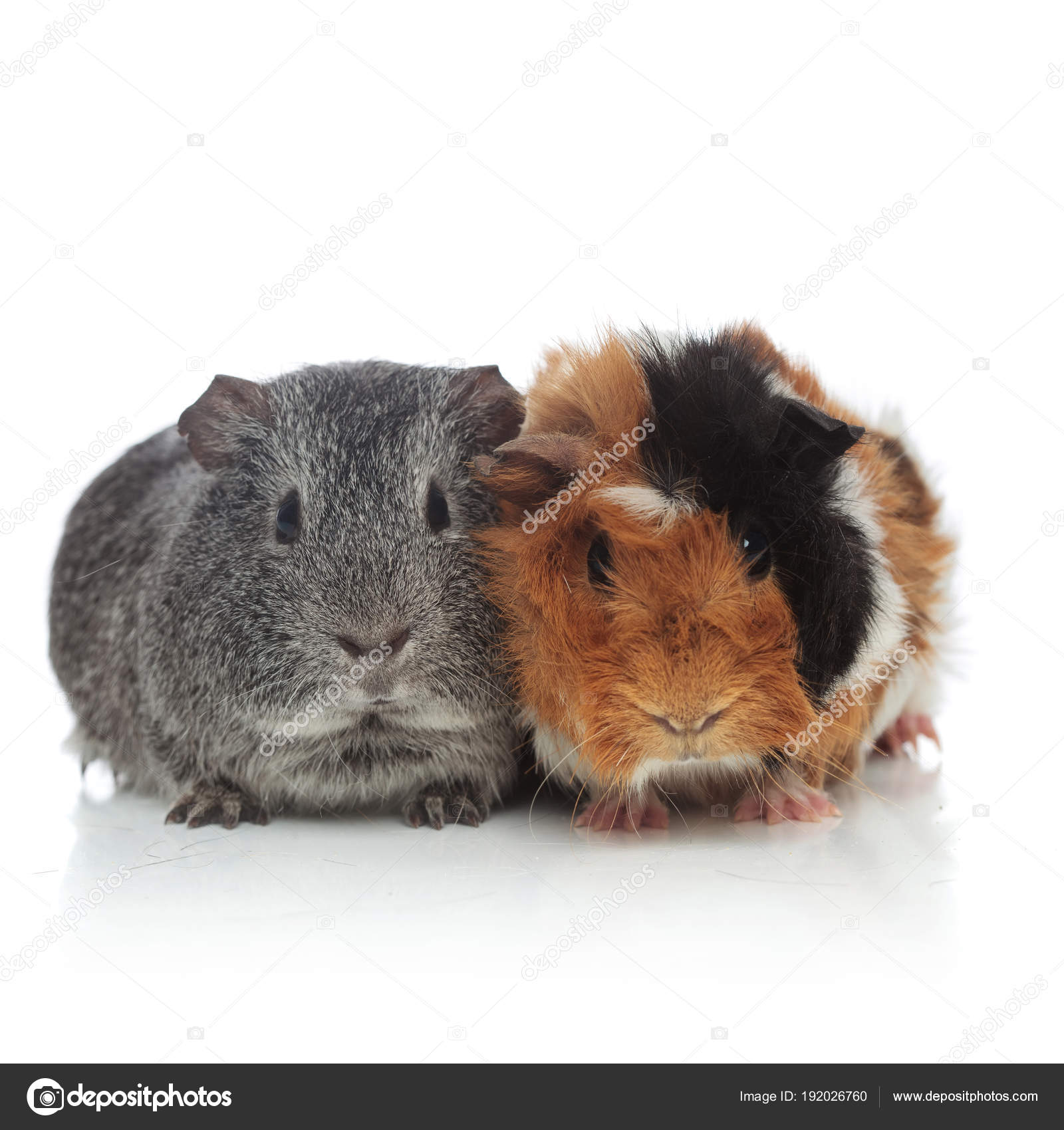 Two Lovely Grey And Brown With Black Guinea Pigs Stock Photo by depositphotos.com