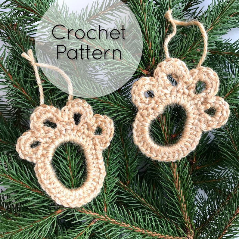 Pdf Crochet Pattern Paw Print Christmas Ornament Easy Pattern Quick Gift Digital Download Dog Lover Cat Lover Animal Lover by etsy.com