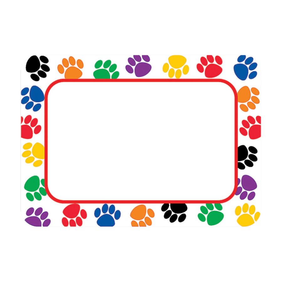 Colorful Paw Prints Name Tags Labels by reallygoodstuff.com