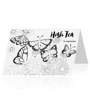 Uitnodiging High Tea Kleurplaat Kaart Vlinders by mycards.nl