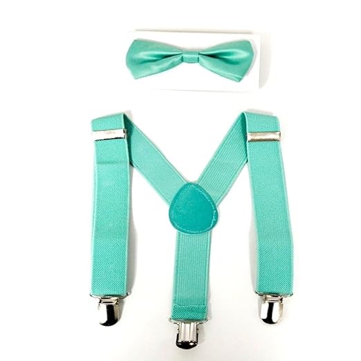 Kat cheung bahar 2pcs bow tie and suspenders set for kids boys 3 clips y. Mint green bow tie. New teal mint kids baby suspender and bow tie set elastic adjustable suspenders.