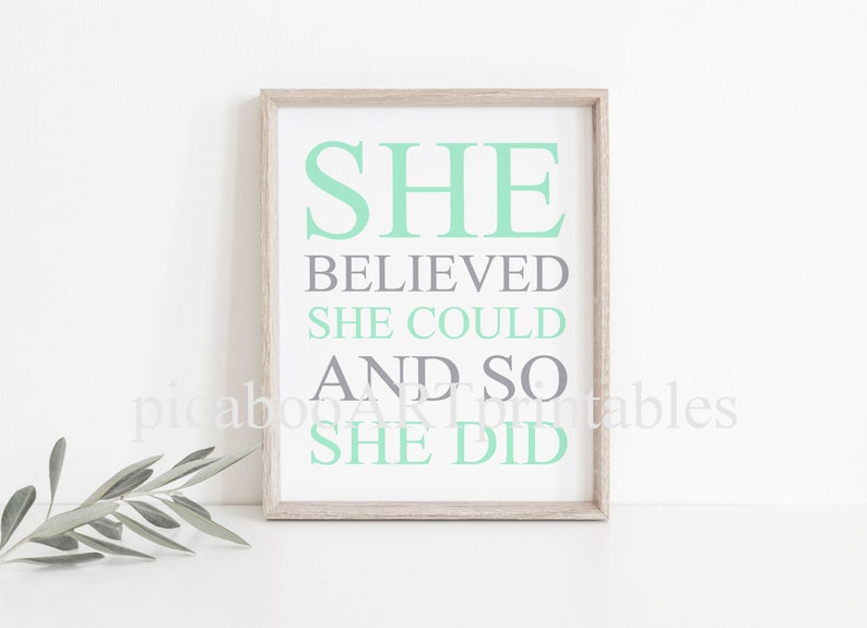 She Believed She Could Mint Green Art Inspirational Quotes Art Motivational Sayings Girls Art Print Instant Download Printable by etsy.com