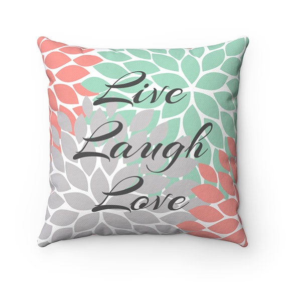 Coral Mint Pillow Throw Pillow With Sayings Live Laugh Love Living by wallartboutique.com