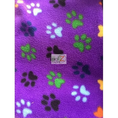Paw Print Polar Fleece Fabric Purple Multi Color Sold By The Yard by walmart.com