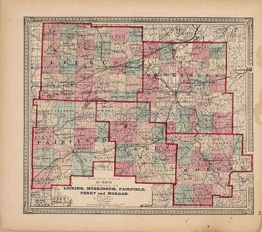Licking Muskingum Perry County Ohio Antique Map Walling 1868 by amazon.com
