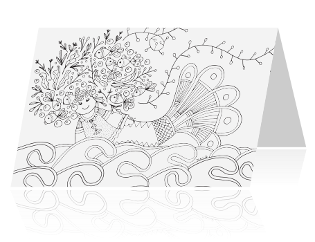Uitnodiging Kinderfeestje Kleurplaat Kaart Zeemeermin by mycards.nl