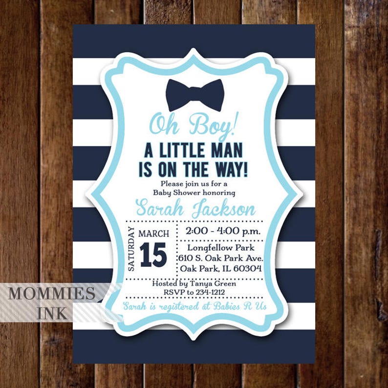 Bow Tie Baby Shower Invitation Little Man Baby Shower Invitation Boy Shower Invite Bowtie Baby Shower Invitation Navy Blue Shower Invite by etsy.com