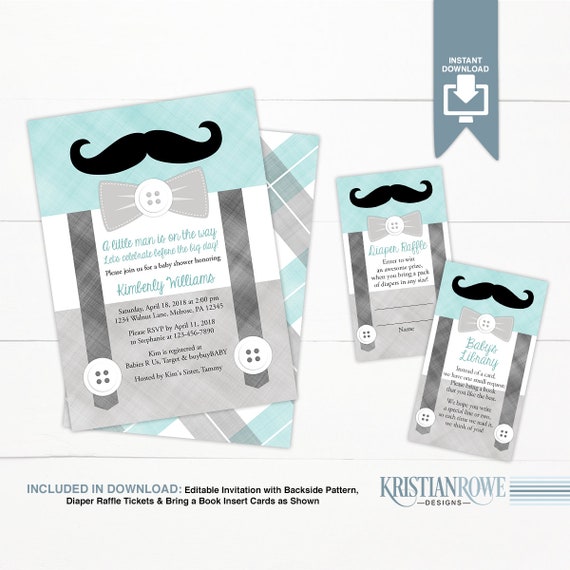 Mustache Baby Shower Invitation Template Boys Bring A Book Insert by catchmyparty.com
