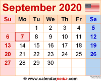 September 2020 Calendars For Word Excel Pdf by calendarpedia.com